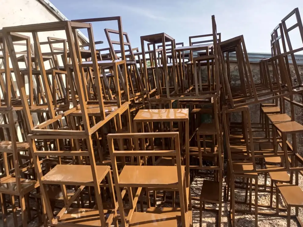 Seit Gründung der Schule in 2014 mussten sich alle Schülerinnen und Schüler bei der Einnahme der täglichen Schüssel mit Reis und einer Art Fischsoße einen Platz auf dem Boden irgendwo auf dem Schulgelände suchen. Auch waren nicht einmal genügend Schüsseln für alle Kinder vorhanden, so dass in zwei Durchgängen gegessen werden musste. Das ist dank der neu errichteten Kantine und dem neuen Mobiliar nun Vergangenheit.